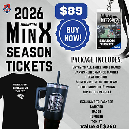 Tickets include entry to all 3 home games, a Jarvis Performance magnet, 1 seat cushion, a signed team picture, 1 free round of Fowling from our partners at Fowling Minneapolis. The exclusive items this year are a lanyard, badge, a surprise design tshirt and a 40oz easy-sip tumbler with a straw. Season Tickets are avalable for purchase until 11:59pm on Friday March 27, 2026.